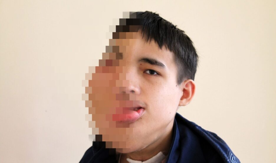 У Мурата очень редкое врожденное заболевание. Из-за генетического сбоя во время эмбрионального развития стали аномально расти кости и мышцы правой части лица и тела. Позвоночник деформировался так, что стал похож на змейку. Мурату трудно долгое время сидеть на одном месте. После физической нагрузки появляется одышка, давит в груди. В горле — трахеостома, но больше для подстраховки, на случай экстренной операции. Ее установили, когда он был еще маленьким и не убрали до сих пор.