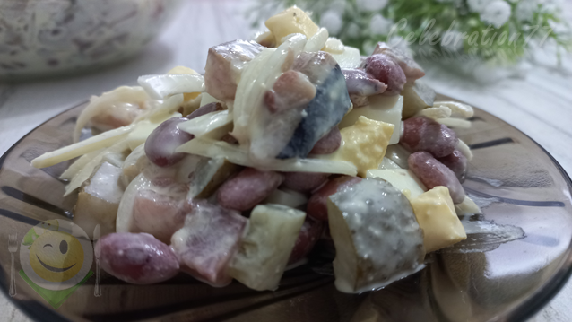 Сегодня предлагаю вашему вниманию салат из сельди и фасоли. Салат несложный, готовится из доступных продуктов, сытный и очень вкусный. Он отлично подойдет тем, у кого не хватает времени на готовку. Многие знают, что селедка, картофель и лук это идеальное сочетание. Фасоль в этом салате служит заменителем картофеля, что делает это блюдо в приготовлении еще быстрее. Ингредиенты: Филе малосольной сельди............300 гр Консервированная красная фасоль...1 банка(чистый вес фасоли примерно 250 г) Яйца вареные...................3 шт Лук репчатый.....................1 шт Маринованные огурцы...3 шт Майонез Приготовление. Лук нарезаем тонкими перышками. Если лук острый его нужно ошпарить крутым кипятком. Селедку нарезаем кубиком. Если селедка соленая, ее предварительно лучше вымочить в молоке. Так же кубиком нарезаем огурцы. И примерно таким же кубиком режем яйца. Селедка, огурцы и яйца должны быть нарезаны примерно размером с фасолину. Все подготовленные продукты складываем в миску, добавляем