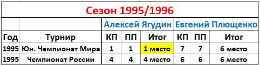 - Чемпионат России-96 (Ягудин - 4 место, Плющенко - 6 место)