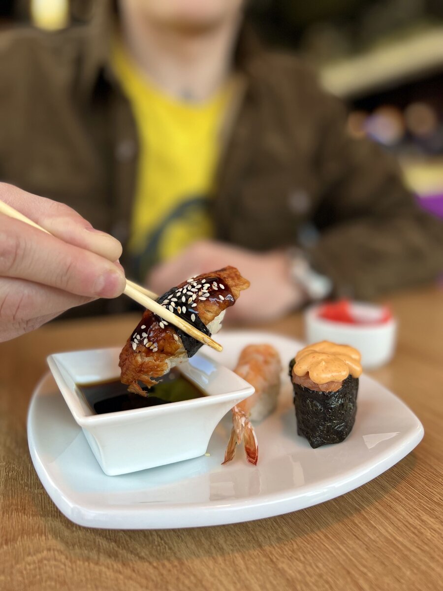 - Роллы можно есть столовым прибором либо руками, а вот употреблять суши нужно строго палочками.