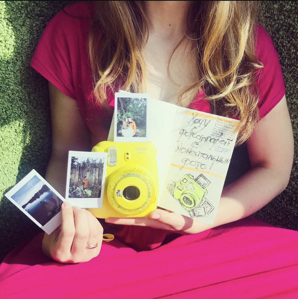 Предистория: В далёком 2015 году мне довелось прочитать книгу Брайна Трейси "Точка фокуса", где рассказывается о правильной постановке цели, о визуализации и т.д. Тогда я завела себе блокнотик, в котором зарисовывала свои желания) Одним из таких желаний был плёночный фотоаппарат. Я просила его у мужа, но он сказал, что это не очень практичная вещь, и картриджи дорого стоят, в общем он был против. И как бы я не намекала и не вздыхала у витрины с этими милыми яркими фотоаппаратами - ничего не менялось. "Ну что ж" подумала я "Нет, так нет". И жила себе спокойно дальше. И вот 13 июля 2019 года. Мы празднуем прошедшее день рождения мужа, и знаете, что дарят ему???? ЖЕЛТЫЙ ПЛЁНОЧНЫЙ ФОТОАППАРАТ!!!!!!! Он был дополнением к основному подарку, но не в этом суть. Как думаете кто визжал от счастья?.....ну точно не мой муж😅 Когда кто-то говорит, что нужно записывать свои желания и цели, какими бы бредовыми и невыполнимыми они не были - не отказывайтесь, делайте, пишите, планируйте, визуализир