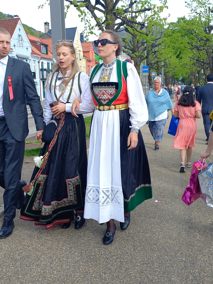 Норвегия известна сказочной красотой своей природы. Снежные вершины гор, голубизна фьордов, седые туманы горных долин рождают ощущение сказочности этой земли. Национальный костюм норвежцев-бюнад- является своего рода продолжением этой сказочности. Надевается он лишь несколько раз в году по большим праздникам. Одним из таких праздников является 17 Мая- день Конституции Норвегии. Бюнад - это название народных костюмов из различных районов Норвегии. По нему норвежец может определить, откуда родом владелец костюма. Поскольку у каждого региона свой бюнад. Вышивка выполняется вручную. Украшения - из золота и серебра. Стоимость пошива такого костюма в специализированной мастерской начинается с пяти тысяч евро. Но результат стоит этих денег. Хочу, чтобы вы вместе со мной полюбовались норвежским народным костюмом. Причем он одинаково хорош и на молодежи, и на людях постарше. Стелла Ларсен.