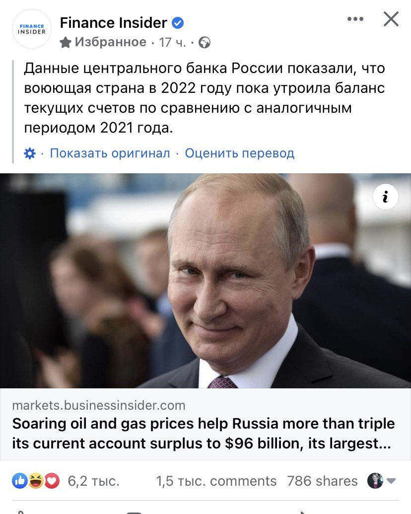 Вот с такими заголовками сегодня выходят мировые финансовые СМИ Виной отчет ЦБ за 4 месяца. Счет текущих операций в России за первые четыре месяца 2022 достиг невероятных и ошеломляющих 95.9 млрд $ по сравнению с 27.5 млрд за первый квартал 2021. Это не просто рекорд, это перелет в другое измерение! Баланс товаров и услуг составил 106.5 млрд по сравнению с 35.2 млрд за январь-апрель 2021. За первый квартал 2021 счет текущих операций был 58.2 млрд, а торговый баланс 66.3 млрд, это значит, что за один месяц в апреле счет текущих операций увеличился на 37.6 млрд, а торговый баланс на 40 млрд. Это запредельно много! Ранее подобные рывки в профицит были всего 3-4 раза за всю историю и за целый квартал. Сейчас за один месяц! Ну и комментарии читателей из Европы. Если в одном месте прибыло, значит в другом месте убыло. ЕС демонстрируют рекордный дефицит торгового баланса, тогда как ранее был устойчивый профицит. Торговый баланс стран ЕС стал рекордно отрицательным за всю историю существо