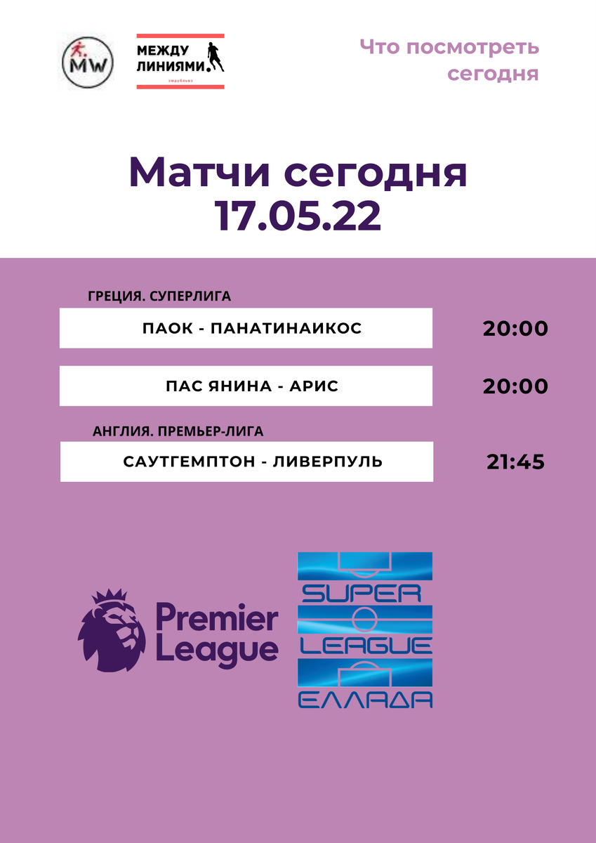 Саутгемптон - Ливерпуль Последний матч 37 тура. Сумеет ли Ливерпуль без двух ключевых футболистов Ван Дейка и Салаха сохранить интригу за чемпионской титул до последнего тура? Саутгемптон при определенных раскладах может покинуть АПЛ. Это случится если Бернли наберет 6 очков в перенесенном матче плюс последнем туре, также если Саутгемптон не сможет набрать ни одного очка в двух последних матчах. При равенстве очков будет учитываться разница мячей. Так что Саутгемптон не лишен турнирной мотивации, и зацепив одно очко в этом матче, обезопасит себя от угрозы вылета. Ничья Ливерпуля формально делает МС чемпионом, так как даже если в последнем туре Сити проиграет и Ливерпуль выиграет равенство очков не позволяет Ливерпулю стать чемпионом при текущих разницах мячей(Сити опережает Ливерпуль на 7 мячей, но у ). В общем "мерсисайдцам" необходима победа, как воздух да и в лучшем случае разгромная. ПАОК - Панатинаикос Четыре команды Суперлиги Греции поделили путевки в еврокубки. Олимпиакос оста