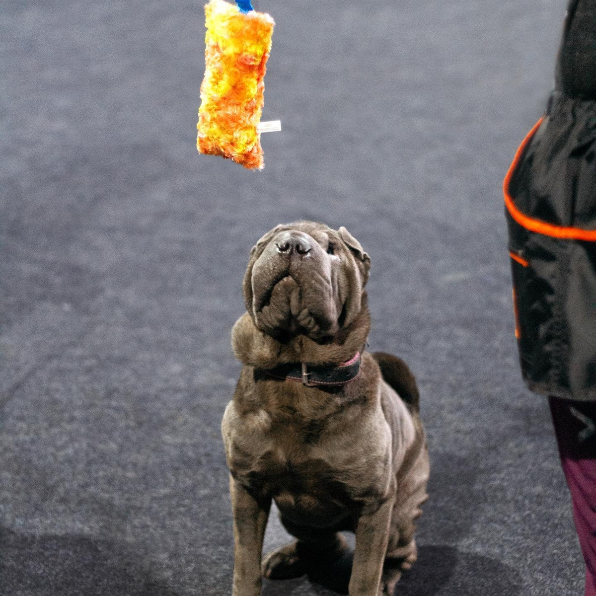 Играйте от души, хвалите, подбадривайте собаку. Можно слегка похлопать по бокам, если собака хорошо относится к прикосновениям.
