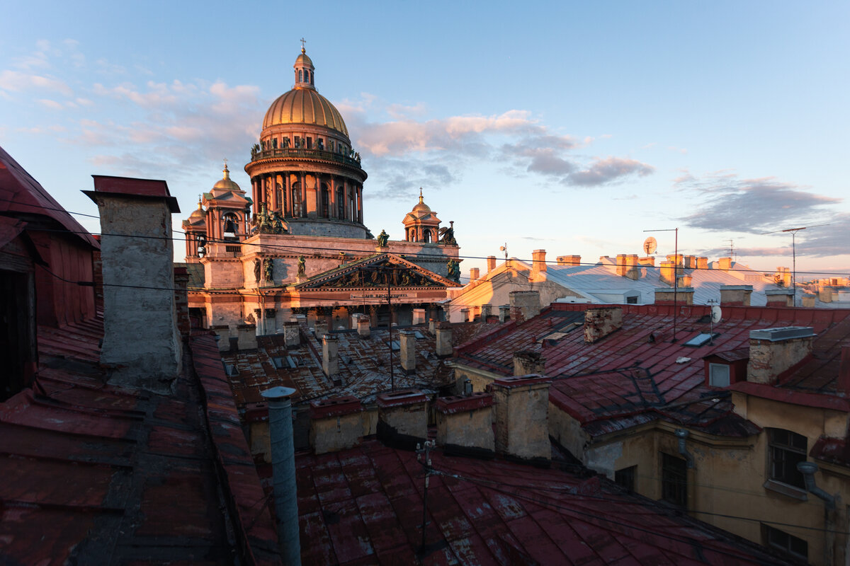 И на крышу можно выбраться только в составе экскурсии. Хотя у меня получилось выбраться на крышу другим способом: на Яндекс путешествиях, я случайно нашел номер в отеле, на мансарде всего за 2500р. Заселившись, я не смог удержаться и вылез на крышу. К моему удивлению, крыша оказалась очень близко к Исаакиевскому собору