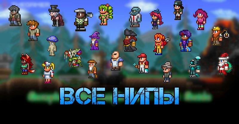 1. Кто такой НИП? Вообще НИП это - не игровой персонаж для большей атмосферы и мотивирующий игроков совершать те или иные действия. Основным требованием для каждого НИПа является наличие пустого дома. Всего существует 28 НИПов. И так первым о чём я хотел бы вам рассказать является ответ на вопрос Что же это такое "Уровень счастья". Счастье НИПа зависит от биома в котором он живёт и с кем рядом он живёт. Счастье в свою очередь влияет на цены в магазине НИПа и будет ли он продавать пилон (специальный телепорт, различный для каждого биома). Счастье НИПа можно проверить нажав на специяльную кинопичку. 2. Трактирщик Один из моих любимых НИПов в Террарии - трактирщик. Его можно найти где ни будь в вашем мире спящим (пьяным) после убийства мозга Ктулху или пожирателя миров. Он продаёт много посохов и брони, почти всех их он продаёт за отдельную валюту - медали защитника. Ну и конечно с ним можно круто чокнуться кружками с пивом. Кстати сам трактирщик отсылка к другой игре - Dungeon Defende