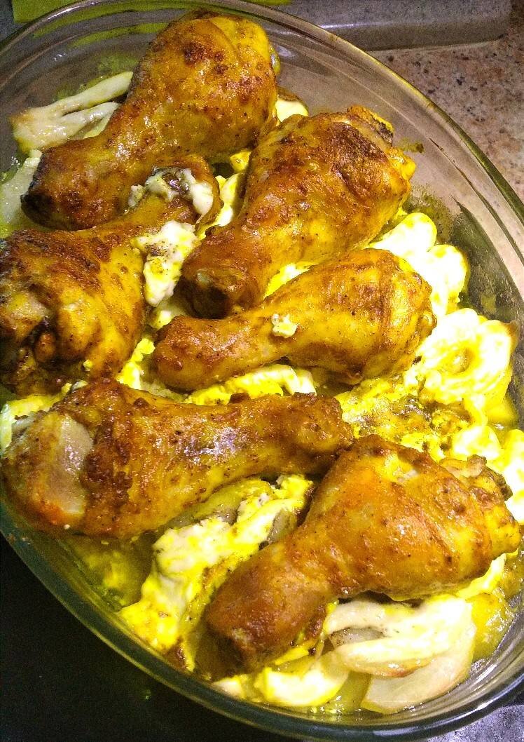 #непп Вкусный и сытный ужин. Ингредиенты: голени цыпленка, картофеля, майонеза, воды, подсолнечное масло, куркума, соль, перец Способ приготовления: Подготовить все необходимые ингредиенты. Картофель нарезать тонкими кружочками. Дно формы полить подсолнечным маслом. Выложить картофель. Посолить, поперчить. Сверху полить майонезом. Отдельно замариновать курицу. Для маринада использовать майонез, куркуму, соль и перец. Курицу выложить сверху. Залить водичкой. Отправить блюдо в духовку на 45 мин при температуре 180 градусов до готовности. Сытный и вкусный ужин готов. Приятного аппетита!