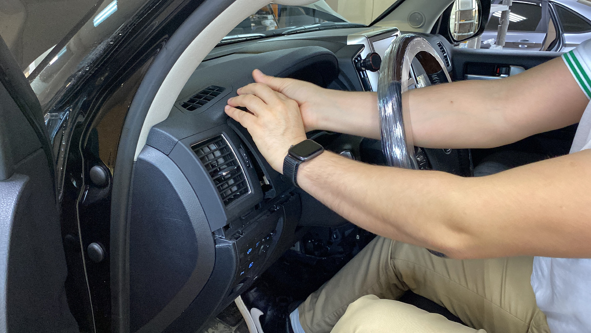 У друга, коллега по работе, купил автомобиль Toyota Land Cruiser 200 2018 года. Коллега приехал к нам, для установки омывателя камеры заднего вида (кстати очень полезная вещь) и заодно проверить работоспособность установленной "сигнализации". Кроме ключа от автомобиля с собой надо было носить черную метку и перед тем как автомобиль завести необходимо было ввести pin-код штатными кнопками автомобиля. Само собой без метки автомобиль глох, при начале движения. Без ввода pin-кода автомобиль не заводился. Пока все вроде правильно и хорошо. Ок, проверим качество монтажа. Одно из самых распространенных мест "типовой" установки охранного оборудования - за приборной панелью. Туда и лезем. Снимаем декоративный пластик. А потом и саму приборную панель. И перед нами открывается такой вид. Кто хоть немного сталкивался с электрикой, то сразу увидит не заводское оборудование. Вот и получается, что в правой руке у меня "pin-код" а в левой руке "метка". Отключаем эти устройства от питания и