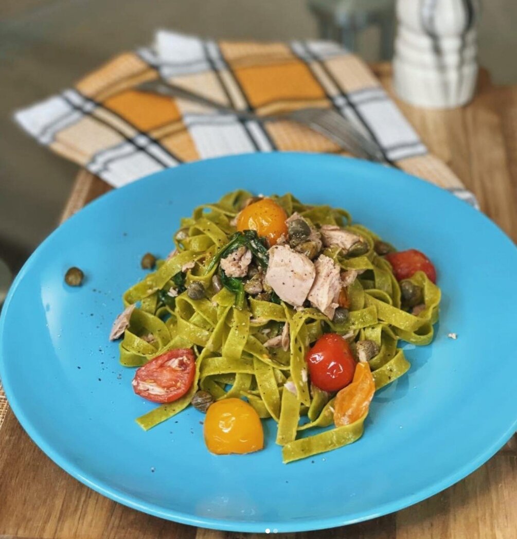 Способ приготовления очень простой, но нереально вкусный. Нам понадобится: Паста Каперсы Консервированный тунец Оливковое масло Помидоры Черри: желтые и красные Шпинат Отвариваем пасту. В это же время обжариваем каперсы, добавляем к ним помидоры, следом шпинат и тунец. По готовности смешиваем все с пастой. Приятного аппетита! #ппподдубная