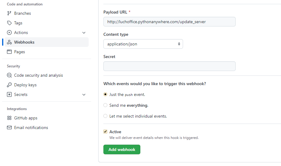 Переходим в настройки https://github.com/luchoffice/bot_telegram/settings/hooks