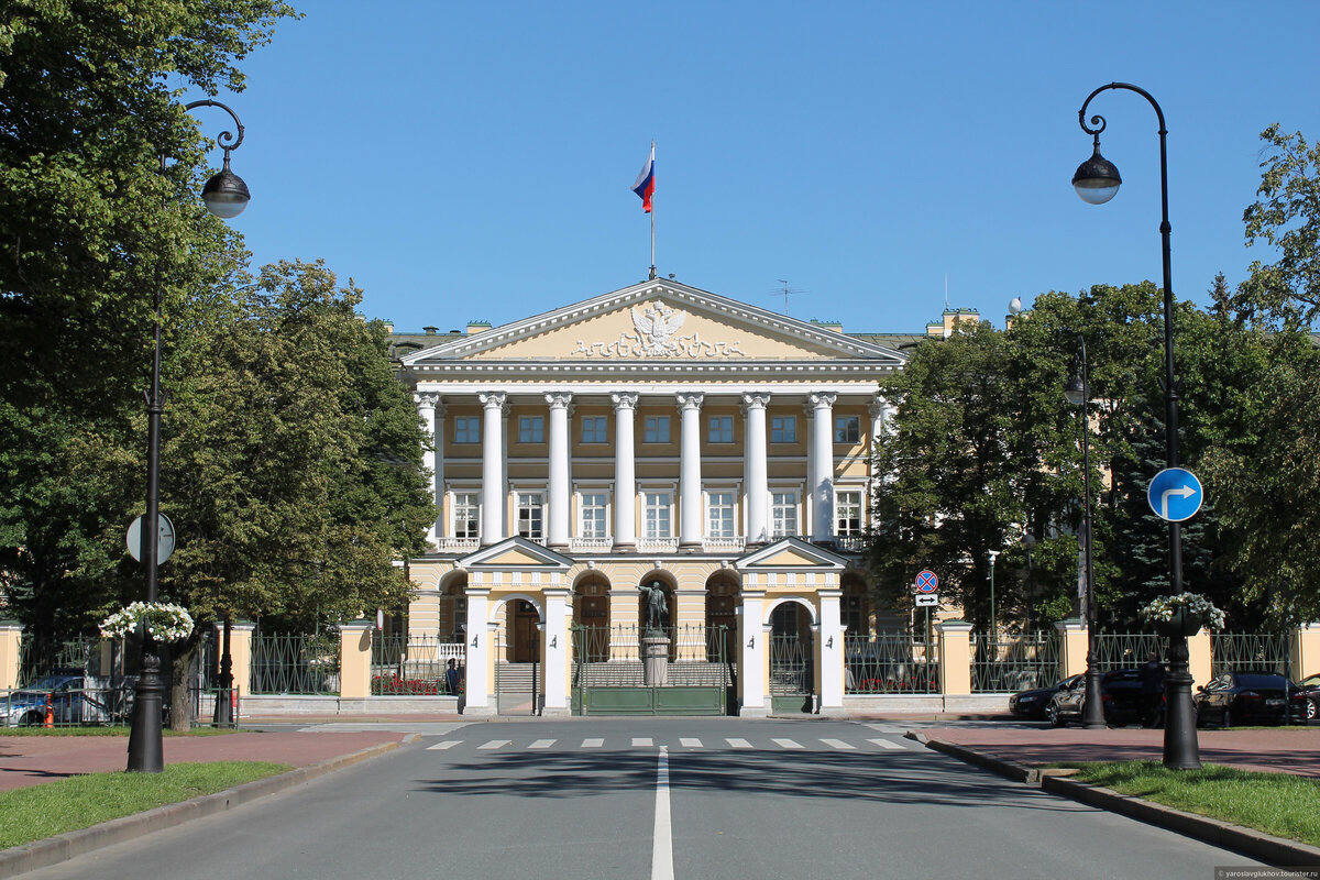 Известное нам сегодня здание Смольного института появилось не сразу. Первоначально Воспитательное общество благородных девиц размещалось в трехэтажных жилых корпусах Смольного монастыря. Однако в тесных монастырских помещениях было неудобно, поэтому в 1806 году архитектору Джакомо Кваренги поручили строительство нового здания. Екатерина II была высокого мнения об общественных зданиях Кварнеги. В своём письме, датированном 1785 годом, она писала: «Этот Кваренги делает нам восхитительные вещи; весь город уже полон его постройками, он строит банк, биржу, множество складов, лавок и частных домов, и его постройки так хороши, что лучших и быть не может». В архитектурном плане Смольный продолжает цепочку общественных зданий конца XVIII века, в которых Кваренги варьирует одни и те же палладианские мотивы. По словам современников, его приёмы создавали необходимый образ общественного здания: величественный и торжественный. Строгость архитектурных форм и их классические пропорции должны были подч