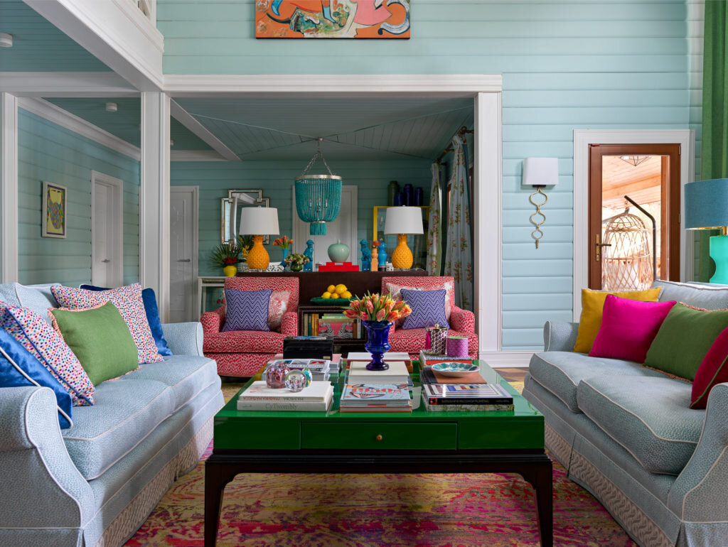 Комплекс «Завидово» – это 56 га уникальной природно-ландшафтной зоны, позволяющий проникнутся единением с природой в максимально комфортабельных условиях. В «Завидово» располагаются отели, коттеджи и таунхаусы на любой вкус и цвет. Марине Жуковой посчастливилось стать дизайнером одного из таких домов – великолепно-яркой курортной дачи в 500 кв. м., располагающейся среди величественных северных сосен Это сложный проект, требовавший огромных усилий от дизайнера, ведь дом заказчица не хотела сносить, но построить в обычном дачном деревянном доме что-то стоящее было достаточно проблематично. Дом подвергся внутренней перепланировке – почти полностью разобран внутри, и добавлена необходимая новая часть: кухня, столовая и спа-зона с джакузи. В итоге Марина прекрасно справилась со всеми трудностями при проектировании и создании дизайна дачи. Главная фишка которой – цвет, именно он является идейной основой дома. Цветовая гамма действительно поражает. Салатовый, небесно-голубой, акцентный розов