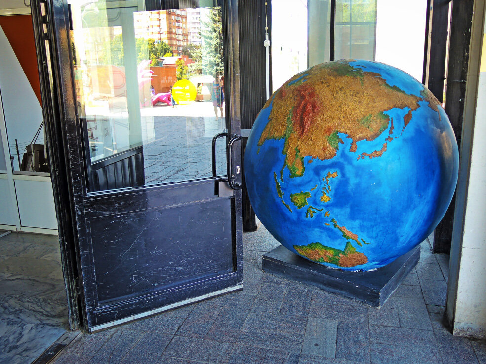 Продолжаю знакомство с самым крупным музеем в Самаре. Это историко-краеведческий музей, который носит имя одного из, как это сейчас называется, мэров города Петра Владимировича Алабина. Именно он был инициатором создания в Самаре музея, который постепенно развился в то, что можно увидеть сейчас. Внешний вид здания, в котором он сейчас располагается, я показал в прошлый раз. А теперь приглашаю пройтись по внутреннему пространству. Архитектура здания предусматривает большой холл на первом этаже. До недавнего времени его, в основном, использовали под различные выставки-ярмарки, а также для аренды под офисы. Новый директор вымел всё лишнее. Наконец-то. И теперь здесь можно увидеть много интересного, даже если не брать билет на какую-то выставку. Музей стал похож на живой организм. С августа прошлого года был здесь три раза, и каждый раз находил что-то новое. Начну с фотографий августа 2021 года. При входе в музей можно увидеть большой глобус. Космическую тему продолжают два экспоната около