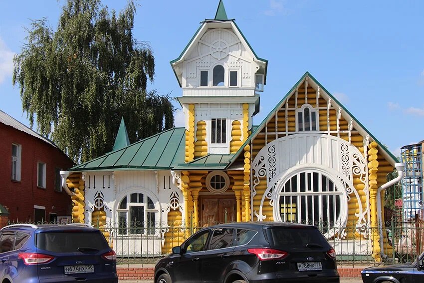 Резной теремок купца Лужина на современной улице Кирова начал свою историю в 1910 году. Тогда богатый купец прикупил у местной богачки участок земли. Строиться начал не сразу, ведь хотелось построить такой терем, чтобы всем было сразу понятно, что здесь живет состоятельный и уважаемый человек. Однажды в одном из журналов на глаза Лужину попалась фотография купальни имения “Песчанка” фон Крузе. Строение так понравилось купцу, что тот нанял архитектора, который на базе единственного снимка создал проект купеческого терема.