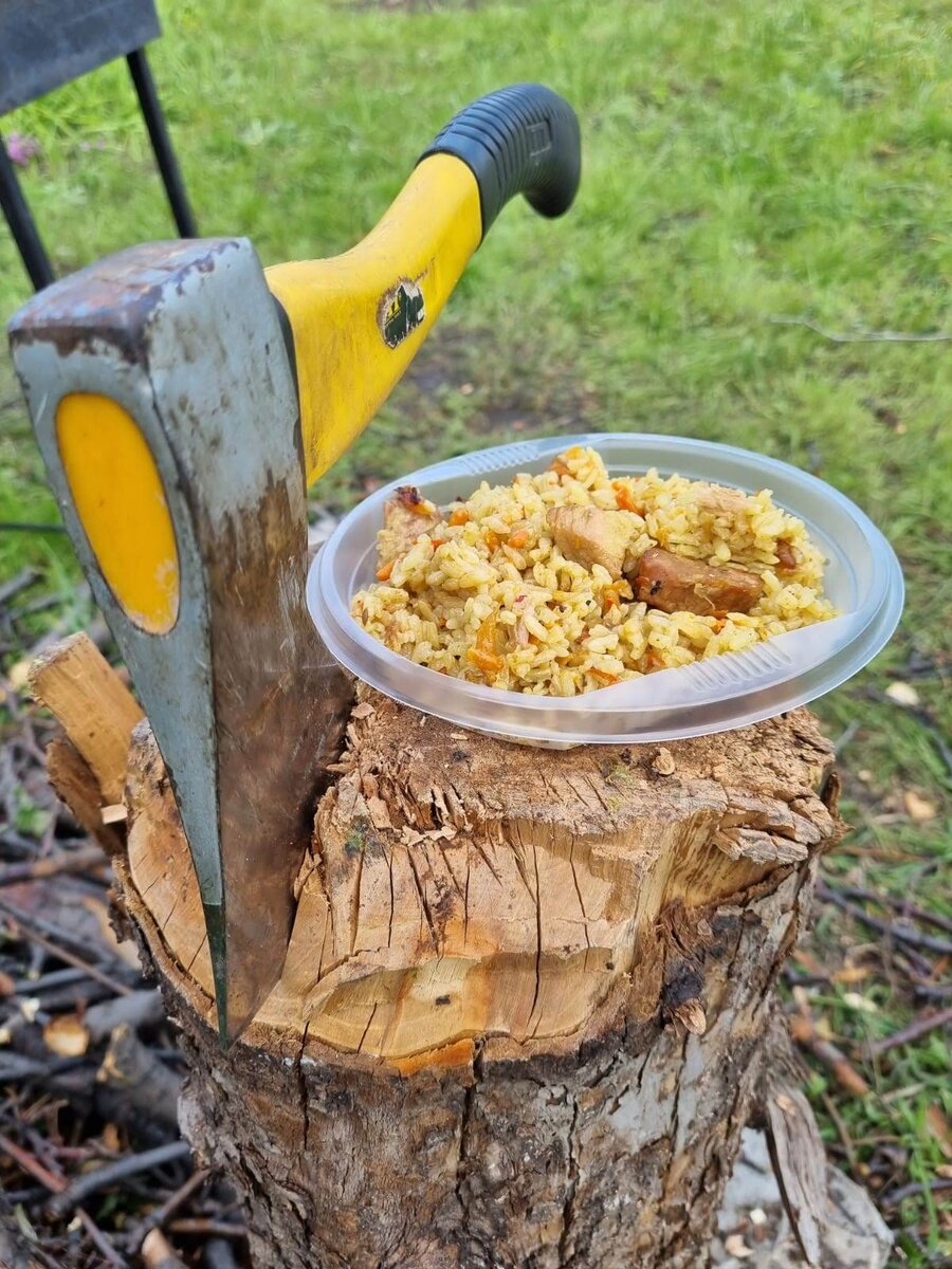 Привет, дорогие подписчики! Вот и настал сезон выездов на природу! Как же я люблю готовить в казане и на огне. Каждое блюдо просто шедевр. Дымок и огонек придает просто невероятный вкус блюду. И наверное еще солнце и хорошее настроение)) Для плова нам надо: мясо, лук, морковь и рис, головка чеснока и специи по вкусу. Когда мы едем на природу, я дома делаю заготовки, что бы не тратить время на чистку и шинковку овощей. Крупно режу лук. Морковь тру на крупной терке ( у меня брусочками получается), можно нарезать соломкой. Мясо хорошо промываем и тоже режем на кусочки. Я все раскладываю по пакетам и на природе уже все готово. Останется только закинуть в казан. Хорошо прокалить казан, добавить масло и тоже его прокалить. Я первым обжариваю лук, до золотистого цвета. Тогда плов и без специй будет желтый. Но многие обжаривают первым делом мясо. Добавляем мясо и жарим все вместе. Постоянно нужно помешивать, тк к казану может пригореть. Добавляем специи и соль. Я покупаю специи в отделе на