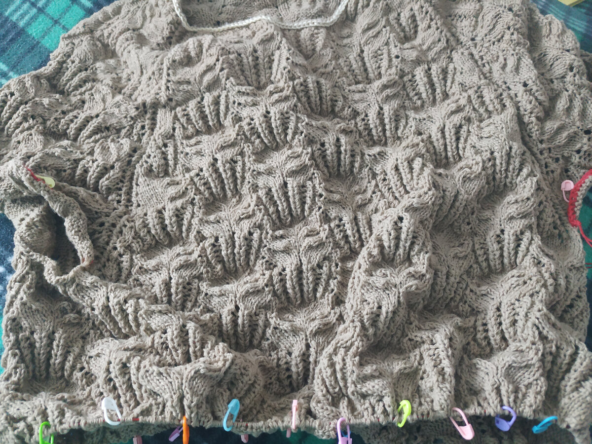 Джемпер "Испанским" узором. Продолжение. Вы распускали когда-нибудь связанную на 70% вещь? Реглан сверху, связать до низа оставалось сантиметров 5. Оверсайз, 340 петель в круг. И безжалостно, в роспуск… Мою #недомаксмару… Причина первая самая банальная… Я не буду это носить. Просто некуда. Если бы я еще вязала из хлопка или льна, я бы могла носить как футболку. А из тонкого мериноса, кардного 700м/100г Zegna Baruffa borgosesia цвет camel в 2 нити… Нет! Не буду!!! Причина вторая, я постоянно ношу свою градиентную кофту. Не знаю, старит ли она меня, выгляжу ли я в ней теткой или бабкой, но носила, ношу и буду носить и в пир, и в мир. Почему? А) мне удобно, Б) мне комфортно, В) мне тепло. Если кому-то не нравится, это их проблема - не моя. Моя проблема, что потратила более 2 недель вязания на вещь не нужную мне. Еще раз смотрю на первую #недомаксмару и оцениваю, что же еще мне в ней не нравится. 1. Мне не нравится как лег узор в горловине при вывязывании ростка. Узор «съел росток». Кто