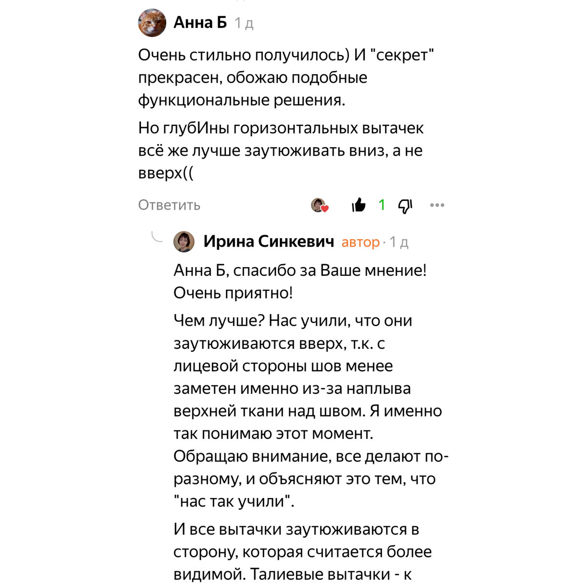 Что тут сложного? Скажет любой, кто хоть немного шьёт. И будет прав. Сложного - ничего! Вытачку следует заутюживать вверх. Я всегда так делаю. Меня учили этому в швейном лицее нашего города, а педсостав был замечательный. Недавно под одной из статей читательница посоветовала мне заутюживать нагрудную вытачку вниз. И привела веские аргументы в защиту своей версии. Вот такие причины мне перечислила Анна Б. Не могу не согласиться. Но откуда же тогда взялась версия, что вытачку заутюживают вверх? И почему кого-то учат вверх, а кого-то - вниз? В современном мире мы привыкли искать всю информацию в интернете. Так что же скажет всемирная паутина на эту тему? Допустим, правила ВТО на сайте Blogremaking. Прослеживается чёткая аналогия. Горизонтальные швы заутюживаются вверх, горизонтальные вытачки тоже. Вот второй способ: Оба способа на различных сайтах заявлены, как верные. Более того, встречаются версии, по которым талиевые вертикальные вытачки заутюживаются к боковым швам. Что, так тоже
