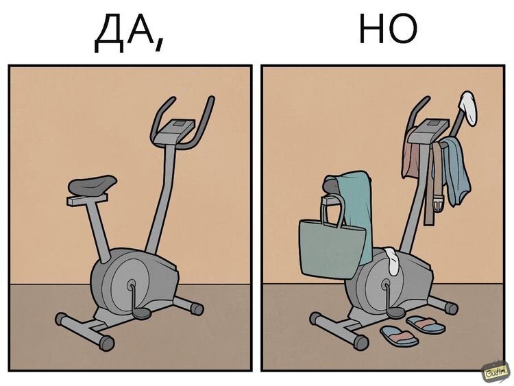 Привет-приветы, ребяты! Как-то не хотелось нагнетать обстановку, писать "многа букав" о том, что наш мир человеков стал напоминать все больше нетленного "Фауста" пера Гёте (кто не читал, рекомендую!), а все потому что некоторые ситуации и поступки людей все больше обращены на создание внешнего антуража, а не внутреннего содержания. Все больше наблюдается ситуаций где красивый фантик и отстойная "начинка". И вот такое несоответствие одного с другим наблюдается не только в подобных ситуациях. Оно затронуло почти все наши сферы жизни. Мы покупаем дорогие тренажеры, но потом храним на них вещи, используем как вешалку или стул. Приобретаем модные аксессуары, притом не заботясь о том умеем ли мы ими нормально пользоваться. И еще куча всего такого о чем лучше расскажут работы Антона Гудима, которые вы увидите в этой статье. Вот вы их посмотрите, а потом отпишитесь в комментариях, похоже ли это вас или может на ваших знакомых? Вот честно скажу, что у меня дома есть велотренажер и пока что он
