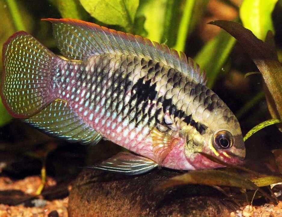 Летакара Дорсигера или Красногрудая Акара (Laetacara dorsigera).