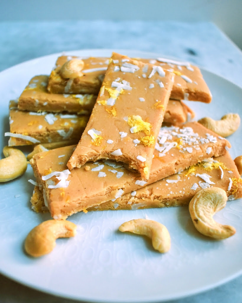 Эти батончики станут вашим новым любимым способом получить порцию протеина после тренировки. Или же просто наслаждайтесь ими в качестве полезного десерта. Они сделаны без рафинированного сахара, глютена и лишних добавок, встречающихся в покупных аналогах. И готовятся такие домашние батончики всего за 15 минут. Часто, просматривая раздел протеиновых батончиков в продуктовом магазине и изучая их состав удивляешься непонятным добавкам и количеству сахара. Ко всему прочему очень редко удается найти что-то действительно приятное на вкус! Поэтому, безусловно мудрым решением будет начать готовить протеиновые батончики дома. Тем более это так просто! Ингредиенты: Способ приготовления: 1. В большой миске смешайте масло кешью, кленовый сироп, лимонный сок, цедру лимона и соль. 2. Постепенно добавляйте миндальную муку и кокосовую муку, помешивая.