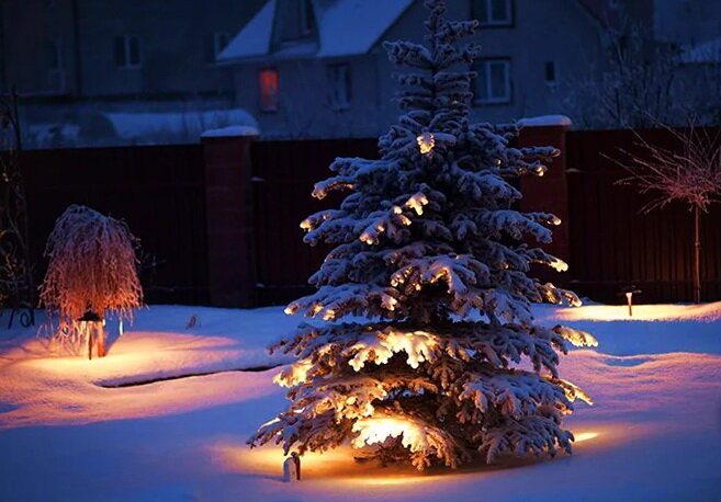 Когда проснулся папа, за окном уже было темно. Он отремонтировал гирлянды, развесил их на елку и по снегу побежали разноцветные волшебные отблески. Втроем накрывали праздничный стол, выходили на улицу к елочке хлопать хлопушки и жечь бенгальские огни.