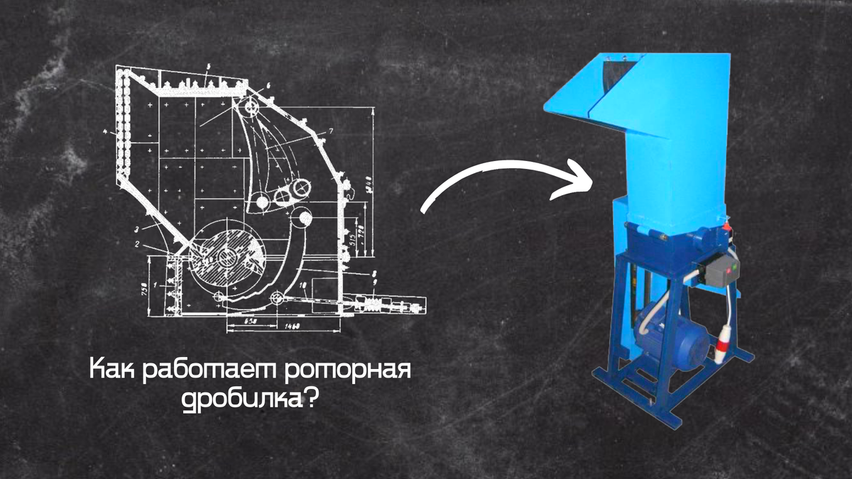 Роторные измельчители самые распространенные, потому что: Конструкция роторной дробилки очень проста: загрузочное отверстие, бункер с ротором и калибровочкая сетка, вот и вся дробилка. Механизм всегда одинаков. Принцип работы такой: на роторе и стенках бункера располагаются лезвия, отходы засыпаются через люк и падают прямо на на ротор, который вращается с высокой скоростью. Отходы разрезаются об ножи ротора и стенок дробилки и таким образом измельчаются. Частицы перерабатываемых изделий вращаются и измельчаются внутри дробилки, пока не превратятся в крошку необходимого размера. Доведенные до нужного состояния гранулы просыпаются через калибровочные отверстия специальной сетки.