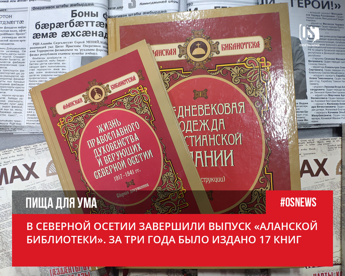 «Это совершенно разносторонние книги. Например, репринты очень интересных исторических журналов, таких как «Чырыстон цард». Или краеведческая литература об истории становления христианства в Алании, работы о патриархе Николае Мистике, об Аланской митрополии, исторические атласы, уникальные книги «Моздокская икона божьей матери» и «Духовные песнопения», в которой Борис Галати собрал ноты. В серии также сборники духовной поэзии, книги об одежде христиан древней Алании с элементами реконструкции, сборник документов, который был подготовлен Архивной службой республики и многое другое. Выход серии завершается потрясающим фотоальбомом «Христианские памятники Алании»», — рассказала Ossetia News замп