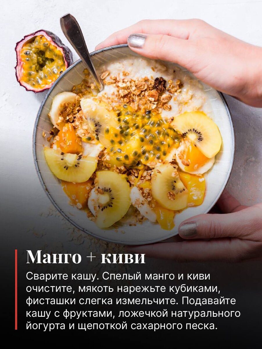 Отличный вариант тропического завтрака, даже если вы живете в средней полосе России. А что вы любите добавлять в кашу? Поделитесь рецептами. 📌 Чтобы поддержать работу нашей редакции, подпишитесь на наш канал, так мы сможем продолжить радовать вас полезным контентом.