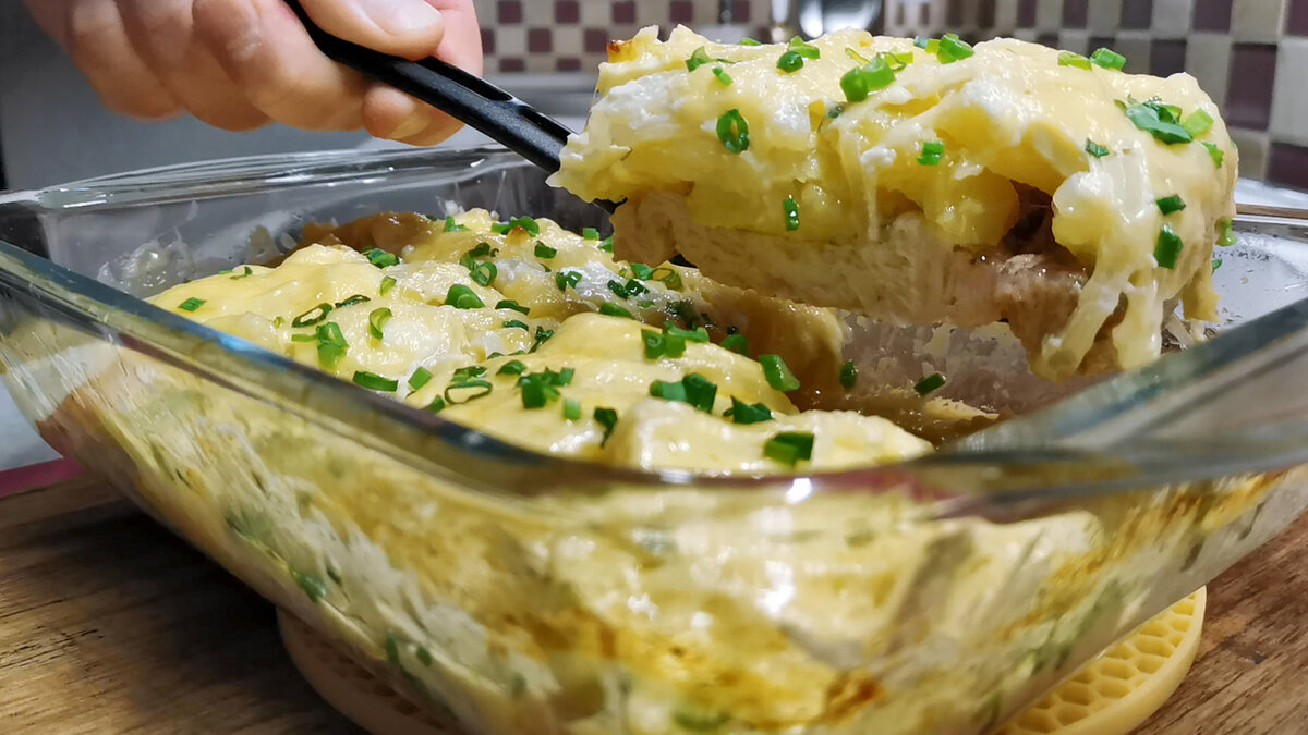 Когда хочется мяса по-французски, готовим его сразу с гарниром. Так вкуснее и можно сделать все в одной посуде