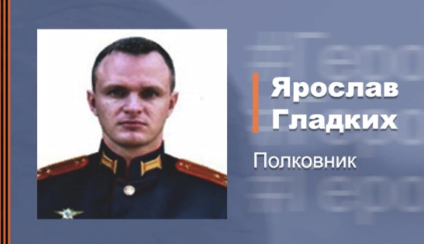 Полковник Ярослав Гладких, командир мотострелкового полка Полковник Ярослав Гладких вместе с вверенным ему мотострелковым полком с первых дней участвует в специальной военной операции по защите Донецкой и Луганской народных республик. В ходе выполнения задач СВО полковником был получен приказ на проведение разведывательно-наступательных действий с целью вскрытия группировки противника в ходе наступления на один из населенных пунктов, подконтрольных украинским националистам. При выдвижении на рубеж развертывания полка было обнаружено большое количество вооруженных националистов. Используя имеющийся опыт, Ярослав Гладких оценил возможности вверенного ему подразделения, а также силы противника и принял решение сходу вклиниться в боевые порядки боевиков. В ходе боя Ярослав получил осколочное ранение в голову и ожег кистей рук, но, несмотря на ранения, продолжил командовать полком. Внезапность действий российских мотострелков под командованием полковника Гладких, а также высокая интенсивнос