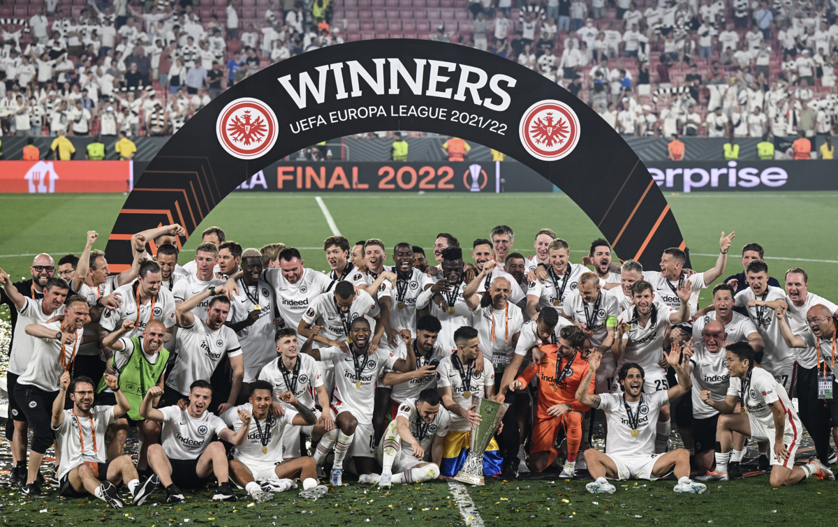 «Айнтрахт» – победитель Лиги Европы-2021/22. В финале в Севилье он встречался с «Рейнджерс». В основное время команды не разобрались – 1:1. Поэтому дотянули до серии пенальти, где «Айнтрахт» был сильнее – 5:4. Прикольная особенность «Айнтрахта» – за него в Лиге Европы сыграли футболисты 17 различных национальностей. Вот расклад: Расклады вокруг мультинациональности и состава «Айнтрахта»: