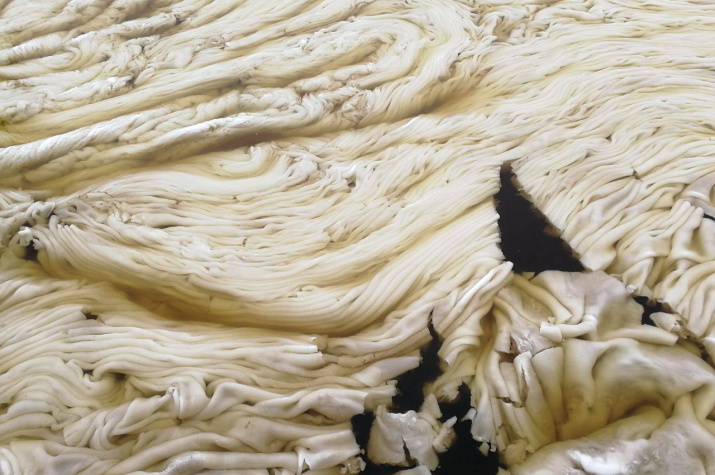 Сегодня расскажем про снежуру — так называют снег, смешанный с водой. Фото: Маргарита Потехина/ААНИИ В природе снежура чаще всего образуется, когда снег выпадает на поверхность рек, озёр и морей. Если температура воды совсем немного выше температуры замерзания (около 0°С), то снег на ней почти не тает. Он остаётся лежать на поверхности и намокает, становясь внешне и на ощупь похожим на “мокрую вату”. А вот по физическим свойствам снежура больше похожа на подтаявшее мороженое и ведёт себя как очень вязкая жидкость. Она может плыть вместе с течением реки, образуя причудливые формы. Кстати, из-за солёности температура замерзания морской воды немного ниже 0°С, поэтому там снежура может не только лежать на поверхности, но и плавать на глубине. Но снежурой могут называть не только снег в водоёмах, но и любой другой снег, пропитанный водой. Например, когда после снегопада на дорогу сыпят соль, она превращается в нелюбимую всеми “кашу под ногами” — это тоже снежура. Из-за того, что снежура обр