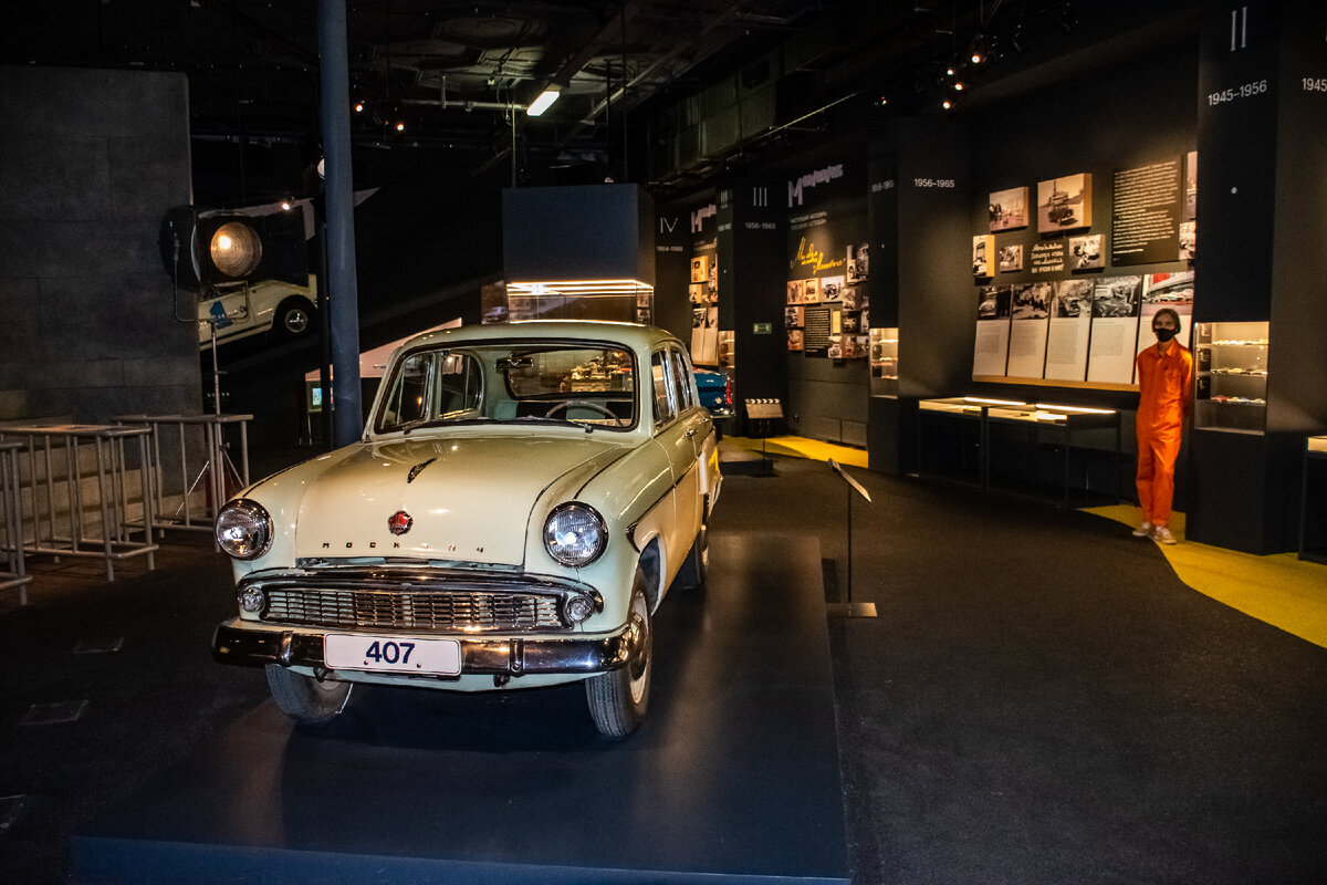 Сегодня Мәскеудегі «Москвич» көрмесі - бұл өмірбаян көрмесі, бірақ адамның өмірбаяны емес, «Москвич» маркалы автомобильдердің көрмесі. Мұнда «Москвичтің» барлық шығарылымдарының жинағы ұсынылған – автомобиль прототиптерінен бастап жалғыз данада жасалған және серияға енбеген модельдерге дейін бар. Тіпті АЗЛК-да жасалған және «Лондон - Сидней», «Лондон-Мехико» әлемдік раллиіне қатысқан жарыс болидтері де болды. «Москвич» – кино қаһарманы «Москвич» автокөлігі Ұлы Отан соғысынан кейін Opel Kadett негізінде шығарыла бастады. КСРО Германиядағы Opel зауытынан жабдықтардың бір бөлігін өтеу құқығын алды. Opel өндірісіне лицензия алу туралы мәселе соғысқа дейін көтерілген. Бірінші залда кино актер - автокөліктер бар. Ымырт, жарық сәулелерімен жарықтандырылып, тұғырларда тұрған машиналар, ал ескі теледидарлардың жанында, өз дәуіріне сәйкес тұр, фильмдердің суреттері бар. Міне, «Москвичтің» алдындағы - «Төртеудің жүрегі» фильмінен Кимнің көлігі (1941). 1954 жылғы таңғажайып "Москвич-422", бүгінгі