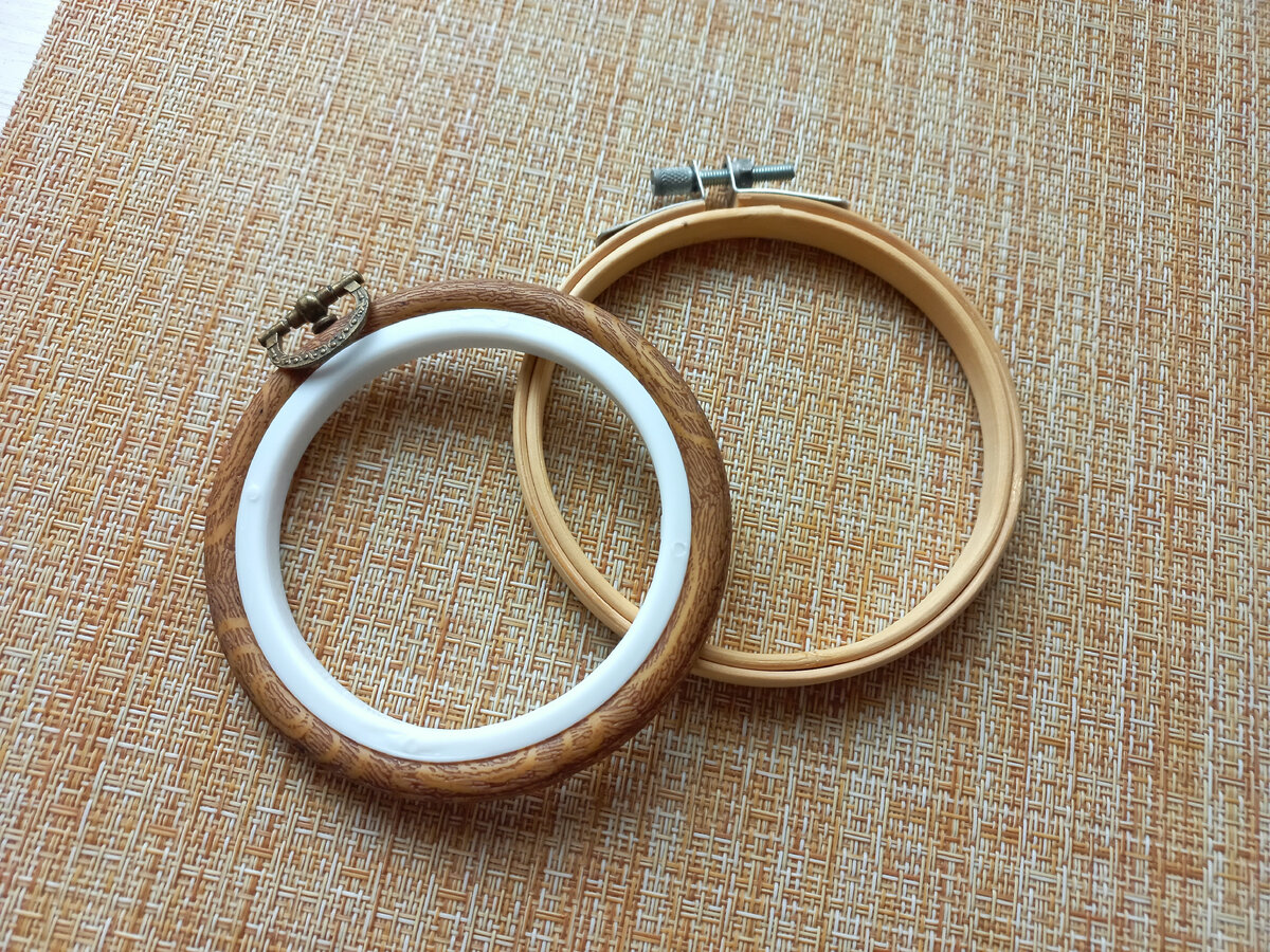 В самом начале творческого пути я вышивала броши без пяльца, просто на фетре. Мне казалось этого достаточно, ведь фетр довольно жесткий. Но в какой-то момент решила все-таки попробовать пяльце и теперь только с ним вышиваю. В чем вообще плюс вышивки в пяльце? Фетр или другая ткань плотно в нем сидят и не загибаются. Хоть фетр и жесткий, он все равно в процессе работы может помятся и повредить вышивку. Когда я начала выбирать пяльце, я столкнулась с тем, что было на выбор два вида и я не знала какой лучше и решила купить оба. В чем же между ними разница? Первое пяльце - деревянное с зажимом сверху. В целом, хорошее пяльце. Единственный минус - если недостаточно затянуть зажим, сверху у ткани плохое натяжение. По поводу второго пяльца я долго сомневалась - не понимала, как оно будет в работе себя вести. А оказалось, оно намного удобнее. Белая часть пяльца - пластмасс, а коричневая часть - что-то типо резины. И в работать с ним очень легко, просто натягиваешь коричневую часть на белую