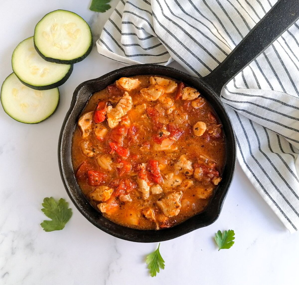 Это блюдо сможет достойно разнообразить привычный рацион блюд из птицы, готовится оно очень просто, а за счет трав, специй и чеснока получается очень ароматным и сочным. Лук мелко нарезать. На сковороде разогреть растительное масло и выложить лук, обжарить его до мягкости. Чеснок измельчить и добавить к луку. Обжаривать 30 секунд. После в сковороду добавить курицу, порезанную на небольшие кусочки, посолить и поперчить по вкусу. Готовить примерно 10 минут После добавить к курице помидоры, орегано, горчицу, специи для курицы и воду. Хорошо перемешать и тушить на среднем огне под крышкой 15-20 минут. Вкусное и сочное рагу готово! Ингредиенты 3 куриные грудки 3 луковицы 2/3 банки консервированных помидоров 5 зубчиков чеснока 4 ст. л. растительного масла 1 ч. л. сушеного орегано 1/2 ч. л. горчицы 300 мл воды или бульона по вкусу специи для курицы по вкусу соль и перец #рагу #куриная грудка #вкусно #рецепты