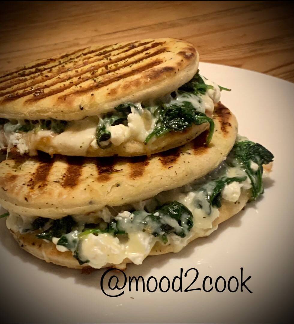 Как там в анекдоте было? «Стою и не знаю куда бы податься… то ли к умным… то ли к красивым…». Так и с этим рецептом … мы , как -то приняли считать , что все мучное вредно . Но прожив 10 лет в Голландии я изменила своё мнение на этот счёт. Хлеб можно и нужно есть ! Для голландцев это вообще продукт #1! Подумав ещё немного …. Решила - таки поставить «пп» под этим рецептом! Сыр и шпинат - отличная и полезная начинка ! Но все хорошо в меру! Особенно масло ☺️ #пп Ингредиенты: Хлеб или лепёшки, Сливочное масло, Шпинат (или замороженный), Чеснок, Тёртая моцарелла, Фетакса (или брынза), Масло для жарки Способ приготовления: Мелко нарубите чеснок и обжарьте одну минутку на разогретом масле. Добавьте листья шпината, приправьте по вкусу и обжарьте до тех пор пока листья не обмякнут. Дайте шпинату остыть и отожмите от излишков влаги. Если листья крупные, их лучше нарезать. Если используете замороженный шпинат, постарайтесь по максимуму выпарить жидкость. Одну сторону лепёшки/хлеба смажьте сливочны