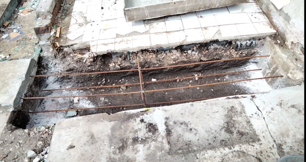 Демонтаж части стены закончен и пришло время заливки фундамента Общая длина соединения около двух метров. Старый дом стоит на фундаментных блоках , новый монолит из железобетона залитый в прошлом году. Общее соединение будет произведено арматурой диаметром 12 мм Арматуру нарезал с учётом длины отверстий, пробуренных в основных частях фундамента. Глубина отверстий около 20 см Отверстия должны сверлиться с учётом защитного слоя бетона, который составляет минимум 2 см Середину соединяем короткими кусками, что бы арматура не разъезжалась при заливке бетона. Общего объема арматуры и соединения достаточно для несущей нагрузки наших будущих стен. Глубина траншеи 50 см, ширина 40. Получается что то вроде балки, которая общей плоскостью лежит на грунте и опорой на бетонные части фундамента. Излишки пространства отгородили опалубкой и произвели заливку бетоном На данном участке фундамента будет дверной проем. И основные нагрузки приходятся на основные части фундамента.