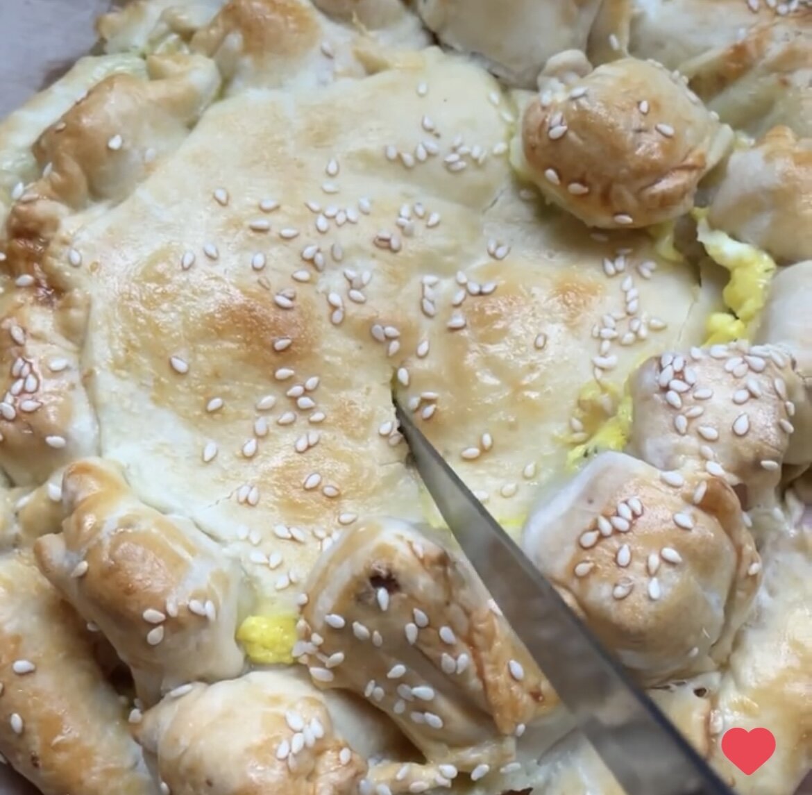 ~~~~~~~~~~~~~~~~~~~~ Ингредиенты есть в каждом холодильнике ~~~~~~~~~~~~~~~~~~~~~~ ➡️слоеное дрожжевое тесто ➡️сосиски (колбаса) ➡️сыр ➡️творог 1/2 пачки ➡️сметана 1 ст ложка ➡️специи Тесто раскатываем, вырезаем два круга. Начинку укладываем в центр первого круга: творог, сметана, зелень, сыр, специи. Перемешиваем. Накрываем вторым кругом. Делаем надрезы на тесте в виде солнечных лучей. Заворачиваем в «лучики» колбасу и сыр. Пирог смазываем яйцом и посыпаем кунжутом. Ставим в духовку на 20-25 минут при 180 градусах. Подаем горячим, кусочки с сосисками обмакиваем в начинку.