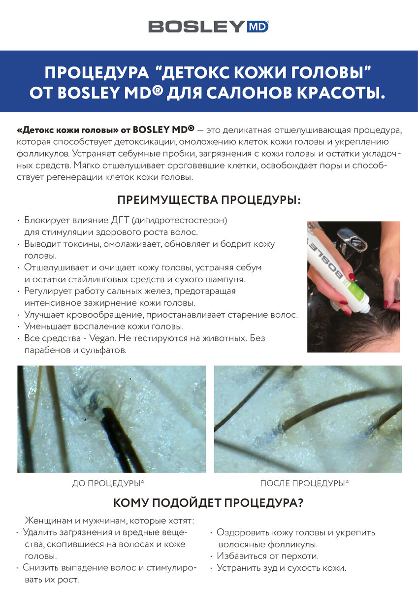 это деликатная отшелушивающая процедура, которая способствует детоксикации, омоложению клеток кожи головы и укреплению фолликулов. Устраняет себумные пробки, загрязнения с кожи головы и остатки укладочных средств. Мягко отшелушивает ороговевшие клетки, освобождает поры и способ- ствует регенерации клеток кожи головы. Мягко отшелушивает ороговевшие клетки, освобождает поры и способствует регенерации клеток кожи головы.