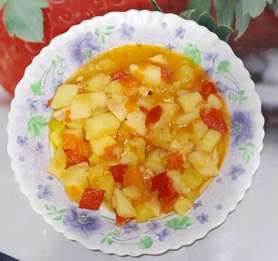 Овощное рагу это очень вкусное и полезное блюдо. Готовить его можно как в кастрюле с толстым дном, так и в мультиварке. Я готовила в мультиварке, мне так удобнее. Для приготовления потребуется: Перец болгарский - 1шт.(примерно 125гр.) Картофель среднего размера - 4шт(у меня вышло 360гр.) Помидоры средние - 2шт. Кабачок - 1 шт. Лук репчатый - 1шт. Морковь - 60 гр. Филе грудки - 150 гр. Растительное масло - 40гр. Специи - по вкусу Свежая зелень - по вкусу Приготовление: За пару минут до окончания жарки добавить соль, перец и др.любимые специи для мяса. 3.После окончания режима жарки,выкладываем слоями овощи: Каждый слой немного посыпаем солью и черным молотым молотый перцем. Если не хочется острого или будут есть и дети,можно просто солью посыпать. 4. Выбираем режим тушения,время приготовления 45мин. 5. Минут за 10 до окончания программы, открыть крышку и перемешать. После приготовления разложить по тарелкам,добавить свежую зелень. Можно так же добавить сметану или майонез. Прия