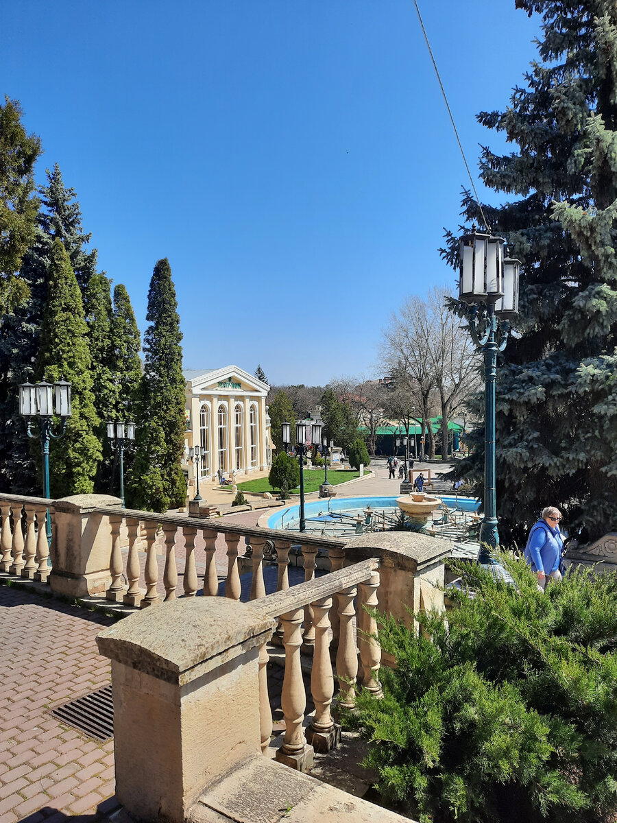 В Ессентуки из Кисловодска погулять я ездила три раза на электричке. Потом ещё два раза проездом была ( это когда в Железноводск там пересадку делали). Ну и ещё один раз на машине в новый комплекс "Скульптурный образ Христа Воскресшего" в Ессентуках заезжали. И восемь раз проездом на дальние экскурсии ( почему-то всегда везли долго по разным улочкам Ессентуков, зато разглядела многое). Здесь про Ессентуки я пока только всего одну статью опубликовала. Да ещё немного упоминала о них в этой статье: Но у меня есть что ещё вам показать и рассказать об этом городе. А он мне очень понравился и душа моя туда просится пожить. Хотя многие считают, что там скучно, некуда ходить и т.п. Да там прекрасный парк. Он такой уютный на мой взгляд. У парка есть две части. Верхняя часть мне очень лес напоминает. Такой сказочный, с белками. Хотя там есть и широкие аллеи и разные цветники, но есть тропки и лужайки с зелёной замечательной травой! И в этой части парка находятся Ванны Царские. А в нижне