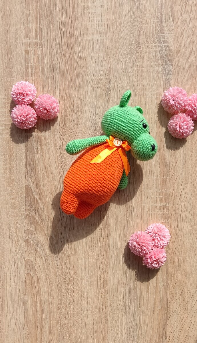Связан своими руками симпатяга ростом 24см. Мягкая игрушка которая будет радовать вас своей красотой. Детям и их родителям хорошо подходит вариант такой игрушки так как на сделана с душой от всего сердца из качественных материалов: пряжа использовалась гипоалергенная полухлопковая, набивка из синтепона ,глазки на безопасном креплении.