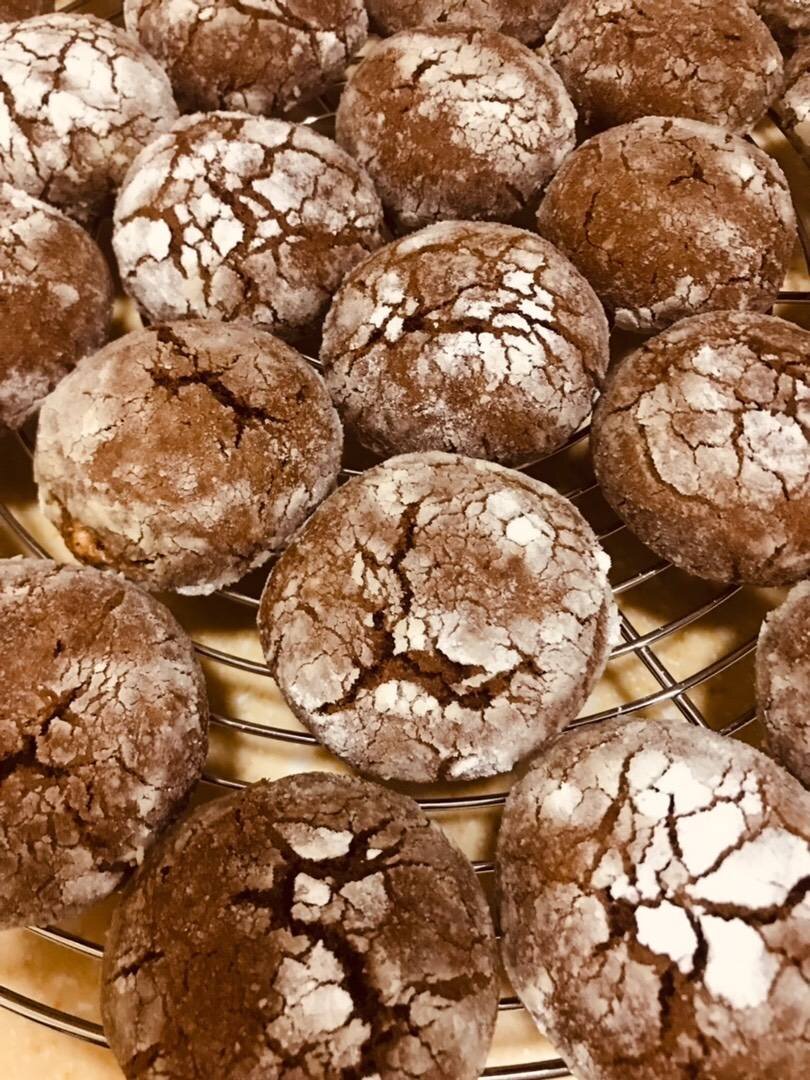 Очень вкусные печенья из минимума продуктов, которые можно приготовить без всяких усилий и времени подавать к семейному чаепитию. Также тесто можно сделать впрок и хранить в холодильнике. Попробуйте 😋😋😋 Ингредиенты: яйца, сахара, растительного масла без запаха, муки, какао, ванильного сахара, разрыхлителя, Для начинки:, измельчённых грецких орехов, шоколада Способ приготовления: Подготовить ингредиенты. Яйца взбить с сахаром и ванильным сахаром. Добавить растительное масло. Перемешать. Добавить какао, перемешать. Затем постепенно добавить муку, перемешать, затем добавить грецкие орехи. Если хотите, сразу можете добавить измельчённый шоколад или шоколадные капли. Перемешать. Получиться мягкое, слегка липнущее к рукам тесто. Убрать в холодильник на 2 часа. По истечении времени взять тесто, разделить размером с грецкий орех (примерно 25-28 шт). Взять сахарную пудру и шоколад (у меня глазурь из карамели), положить на середину шарика, обвалять каждый шарик в сахарную пудру. Выкладывать н
