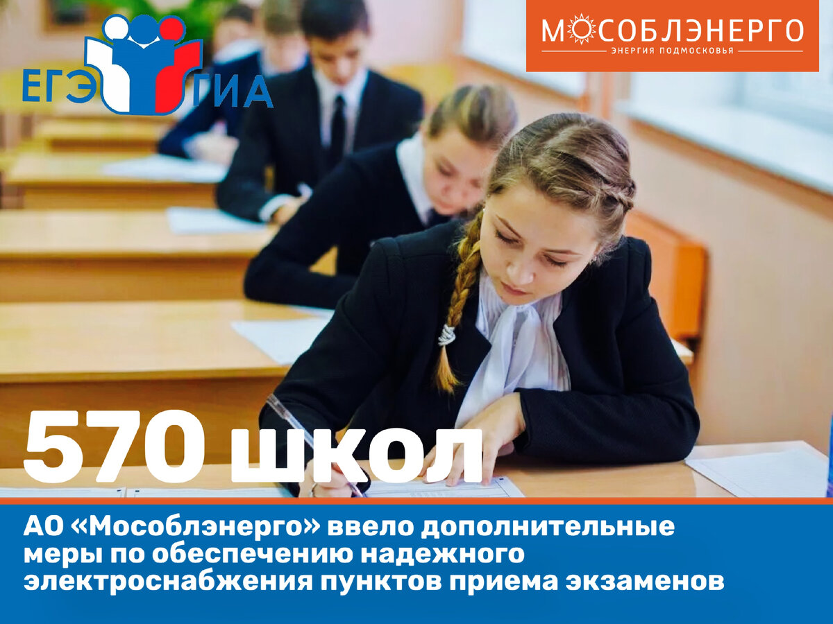 АО «Мособлэнерго» ввело дополнительные меры по обеспечению надежного электроснабжения в дни сдачи ЕГЭ