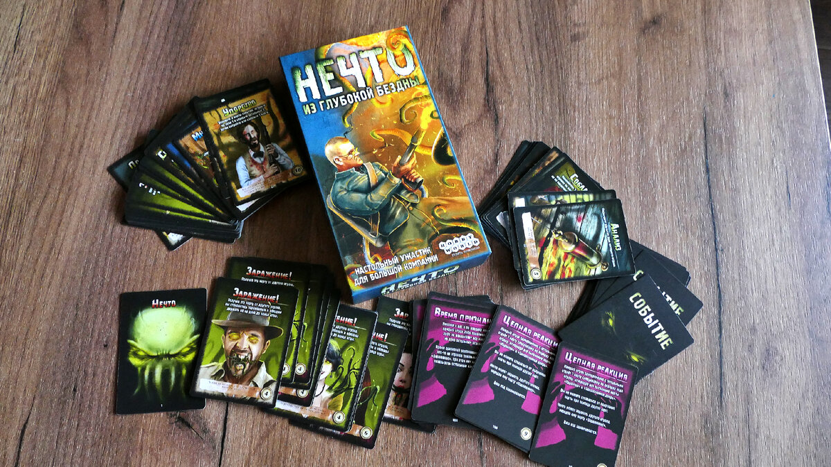 "Вы, парни, думаете, что я рехнулся. Ну и нормально." - х/ф "Нечто" Кто помнит х/ф Нечто 1982 года? А кто читал книги Говарда Лавкрафта? Лично я и то и другое, поэтому с удовольствием расскажу вам про настольную интерпретацию небезызвестного сюжета. Тем более, что игра социально направленная и предназначена для большой компании до 12 человек. В отличии от фильма сюжет игры разворачивается на затонувшем острове P'льех (привет всем адептам Ктулху), который неожиданно всплыл и Мискатоникский университет незамедлительно послал туда экспедицию. Прибывших членов экспедиции, на месте, поджидало нечто из глубокой бездны, которое тот час же поселилось в одном из них. Как вы уже поняли, игроки выполняют роль этих самых членов экспедиции. Каждому раздаётся по 4 карты в руки, показывать их другим игрокам категорически нельзя. Одному из игроков, конечно же достаётся карта "Нечто", он становится волком в овечьей шкуре, но вида не подаёт. Задача Нечто заражать других игроков, постепенно наращи