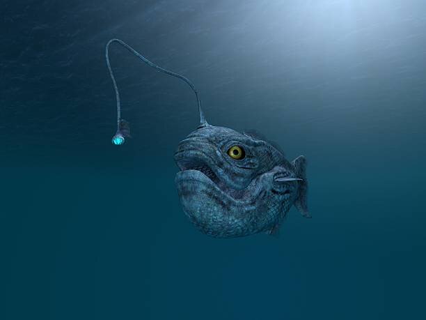 - иллиций является инструментом привлечения добычи – других глубоководных жителей. На его конце находится эска – утолщение в форме пера, которое может светиться, благодаря живущим внутри него люминесцентным бактериям;
