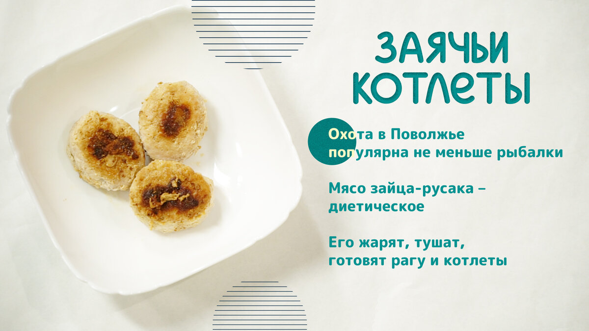Мы рассказали тебе про кухню Поволжья, а знаешь как ее готовить? Лови рецепт самых вкусных и диетических котлет из зайчатины! Тебе понадобится: Тушка зайца - 1 кг; Чеснок - по вкусу; Лук репчатый - 1 головка; Картофель - 1 шт; Свиное сало - по вкусу (совсем немного); Куриные яйца - 2 шт; Соль, перец - по вкусу; Растительное масло для жарки. Тушку зайца необходимо хорошенько обмыть. Затем уложить ее в большую кастрюлю и вымочить в холодной воде в течение 8-12 часов. За это время воду нужно поменять 3-4 раза. Затем мясо отделяем от кости. Через мясорубку пропускаем чеснок, лук, картофель, сало и зайчатину. Фарш готов! Формируем котлетки, обжариваем на сковородке в масле до готовности. Котлеты из зайчатины не только вкусные, но и очень полезные! Ведь мясо зайца богато белками, витаминами, легко усваивается и придется по вкусу тем, кто следит за фигурой!