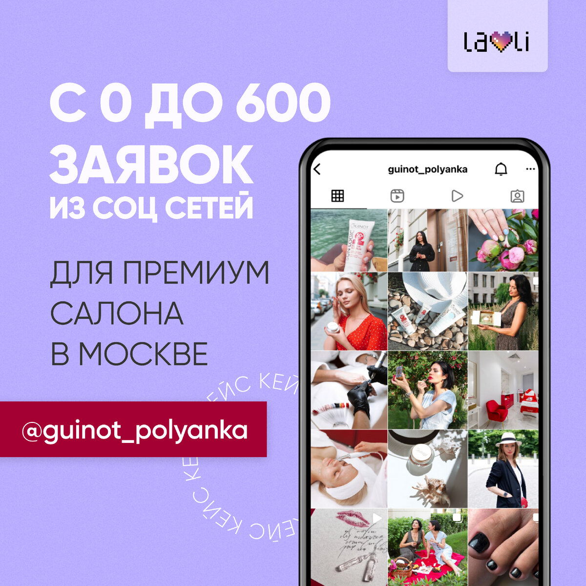 Продвижение нового салона красоты французского бренда космецевтики Guinot мы начали в ноябре 2020 года. Более того, этим проектом мы занимаемся практически с нуля, подключившись спустя месяц с момента открытия. Подобные кейсы - одни из самых сложных и при этом ценных для нас. «Чистый лист», где с одной стороны море творчества и возможностей, а с другой — пустая запись, не выстроенный маркетинг и высокая потребность в быстрых результатах. Основной целью было привлечение целевых заявок на услуги салона из соцсетей, а также имиджевый маркетинг и формирование лояльности аудитории к бренду. Акцент в стратегии был сделан на продвижении фирменных косметологических процедур Guinot и персонализированный сервис. Сегмент бизнес+ и премиум. ✅ Что мы делали? 1️⃣ Съемки контента: от концепта и ТЗ фотографу до списка реквизита и подбора моделей, отражающих разные группы ЦА салона. Мы под ключ реализовываем продакшн съёмок и считаем это основой для успешного старта, особенно премиальных проектов. Эти