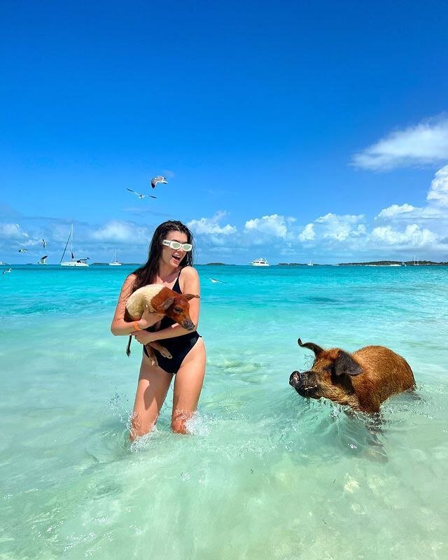 Багамские острова 🇧🇸, Остров Свиней Есть островок на Багамах, его официальное название Биг Мейджор Кей, где основное население состоит из одичавших домашних поросят. Туристам и путешественникам он известен, как Pig Island (остров Свиней) Эти свиньи отличаются от привычных нам, так как буквально стали водоплавающими. Условия на Багамах, конечно, райские: тропические леса, озера, песчаные пляжы, много источников пресной воды. Кстати, остров не обитаем, там нет отелей для туристов. По одной версии, свиньи были когда-то здесь оставлены моряками одного из кораблей, чтобы забрать их и съесть на обратном пути, но тот корабль так и не вернулся на остров. По другой, свиньи выжили после кораблекрушения, и самым сильным из них удалось доплыть до острова. Некоторые же считают, что свиньи были завезены на остров специально, чтобы приманить сюда туристов. Остров является туристической достопримечательностью: многие на него приплывают, чтобы посмотреть и покормить свиней.